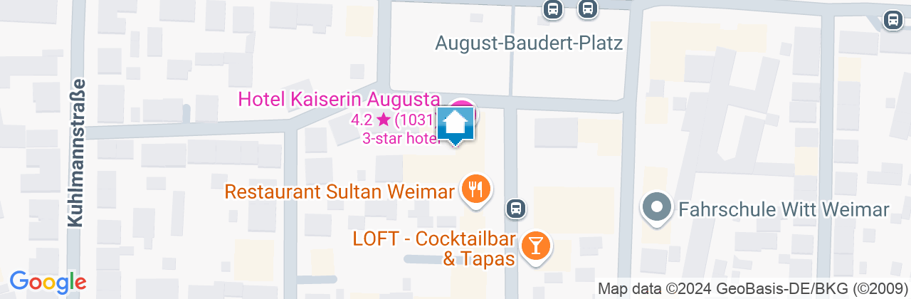Das Hotel liegt 100 Meter gegenüber dem Hauptbahnhof Weimar am August-Baudert-Platz.