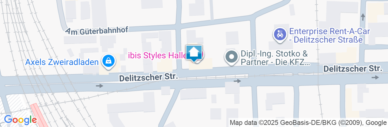 Das ibis Styles Halle liegt nur 300 m vom Hauptbahnhof Halle entfernt. Die Autobahn A14 ist nach 3 km, der Flughafen Leipzig/Halle nach 23 km erreicht. Das Hotel liegt verkehrsgünstig am Rande der Innenstadt von Halle. Bis in das Zentrum der Stadt sind es zu Fuß nur 10 Minuten.