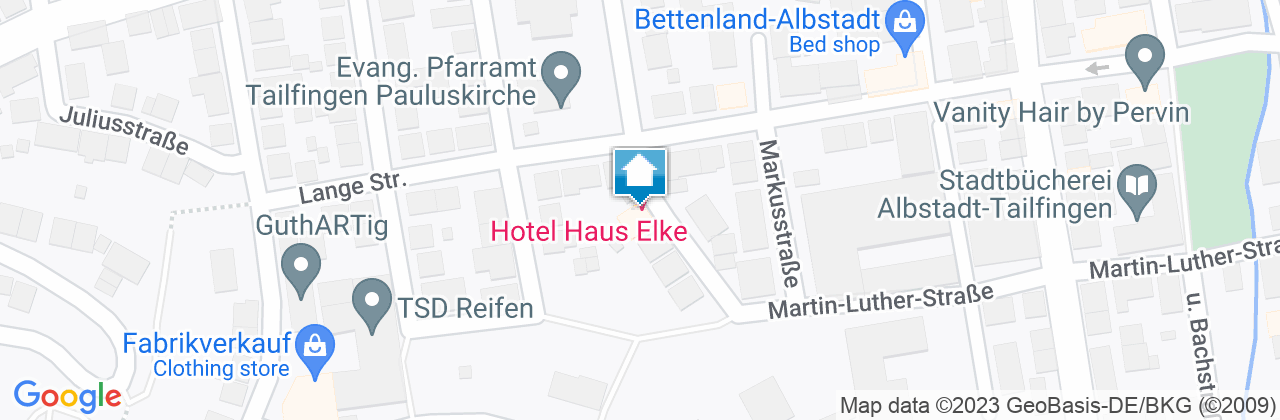 Meine Pension Garni Haus Elke liegt nahe dem Zentrum, jedoch in ruhiger Lage, in Albstadt-Tailfingen. Familiäre Atmosphäre und persönliche Betreuung wird in meinem Haus groß geschrieben, denn meine Gäste sollen sich in meiner Pension einfach wohlfühlen.